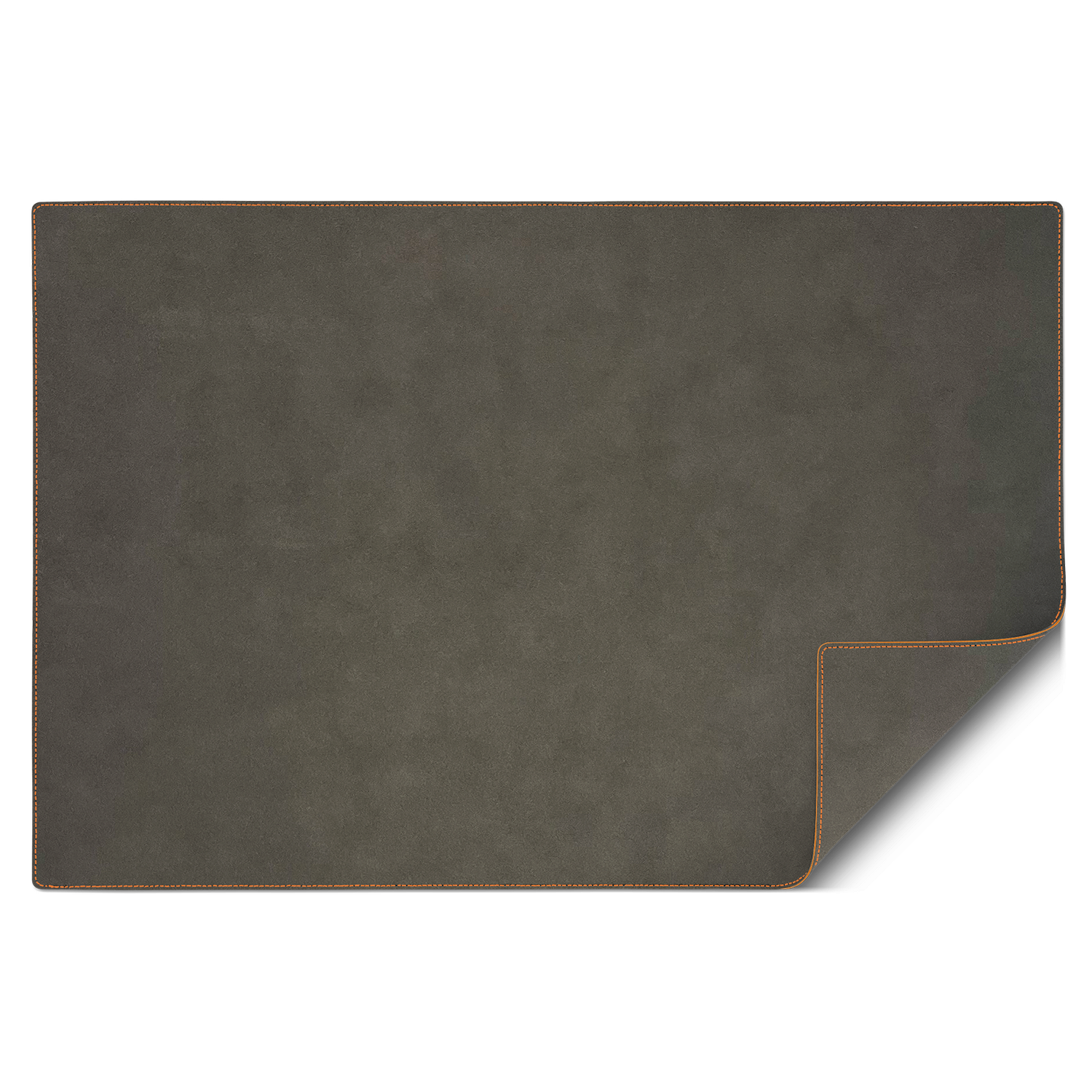 Faux-Rauleder in Anthrazit und oranger Rahmennaht.