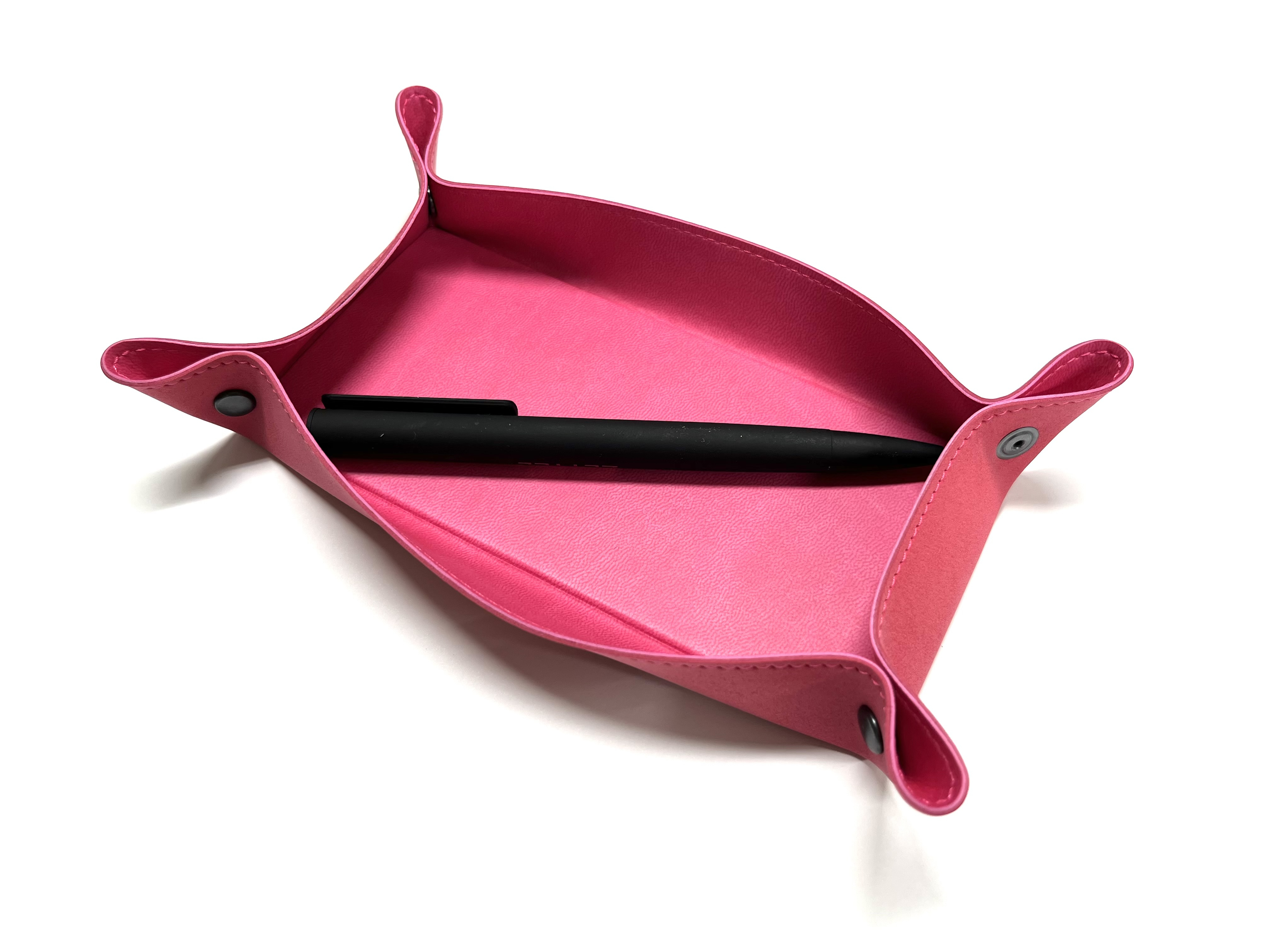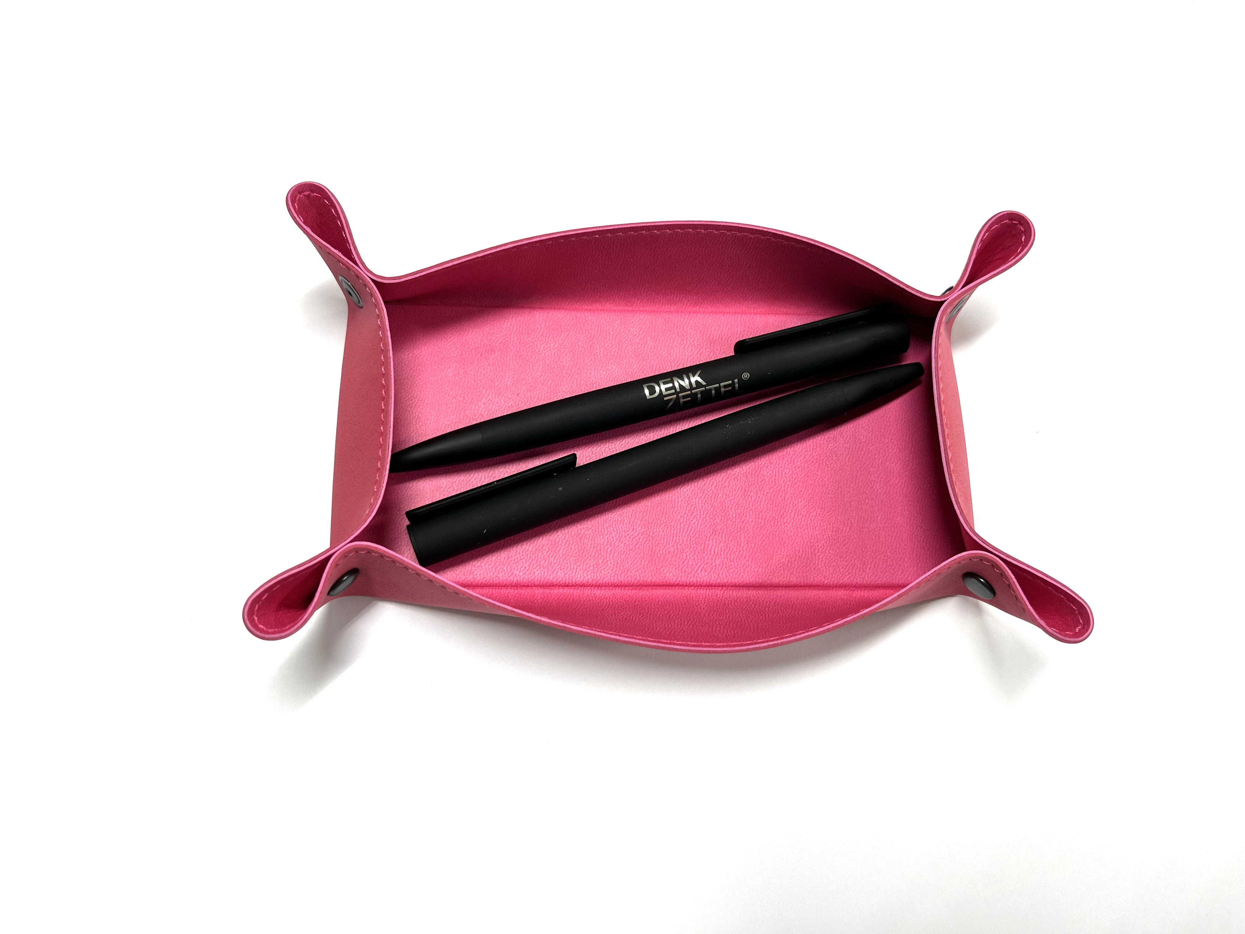 DenkZettel Taschenleerer aus Faux-Rauleder in Pink und pinker Rahmennaht.